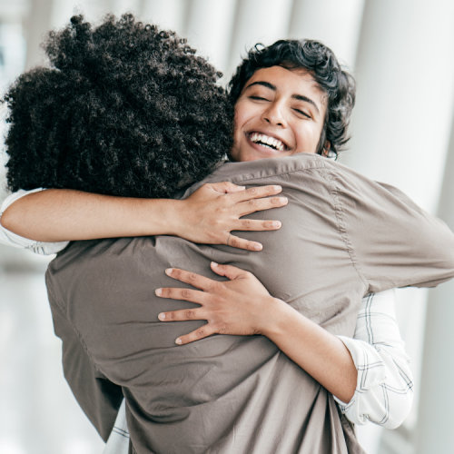 I would be remiss as the President of Compass, an Organizational Performance Consulting firm, to mention that in most company cultures, hugging is frowned upon. But not always. When my husband passed away this year, my team and friends physically embraced me and that is exactly what I needed to survive such intense grief. You should ask if it’s okay to touch another human and read both the verbal and nonverbal signs. Use your judgment.